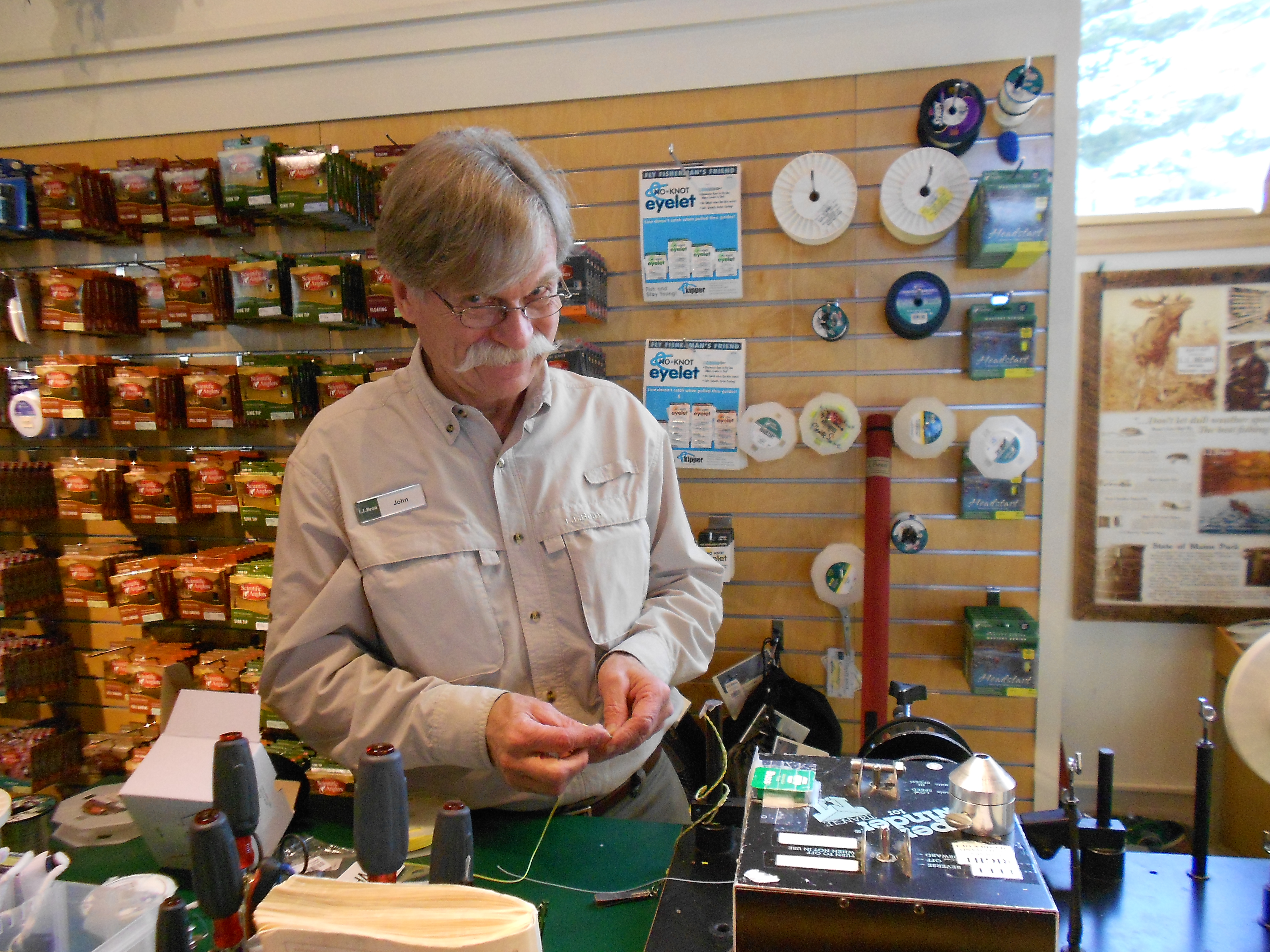 It was great to be able to swing in to the L.L.Bean Spring Fishing Weekend and say hello to all of the great people hanging out and telling “fish stories”. As usual, the crew at Beans was hard at work sharing their expertise and enthusiasm with customers. I thought it would be fun to post a few pics of the team and give them a little “atta boy” for another succesful and pleasant event. Their help and encouragement got me started at the vise and I’ll always be grateful. This gallery is only a few of the MANY fantastic folks that work at Beans. Do you recognize any of this “motley crew”? ARGGGGGGGGG!